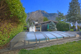 Elle offre un vaste salon / séjour lumineux, ouvert sur le jardin paysager et sa piscine chauffée parfaitement orienté.
